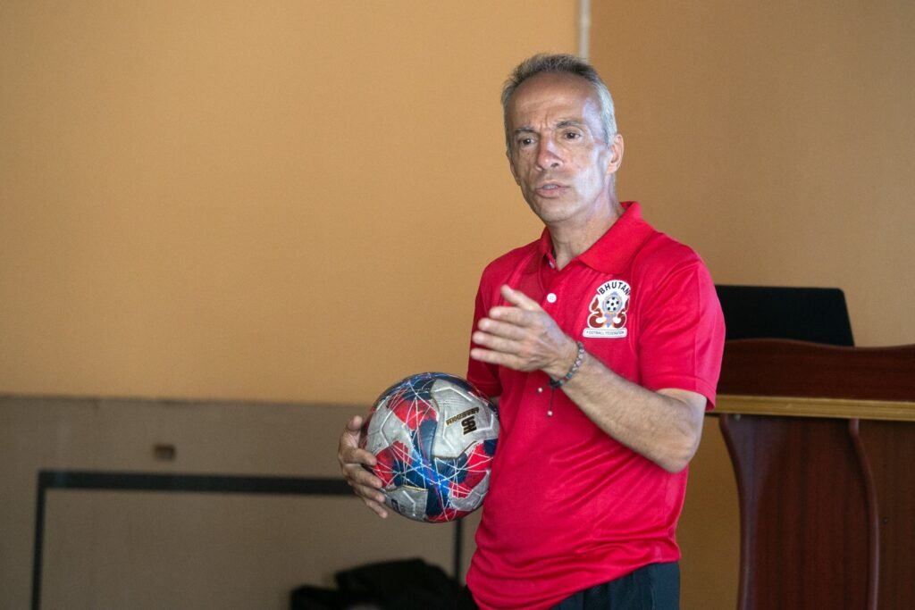 Bhutan Football Federation 6th April 2023 𝐷𝑢𝑡𝑐ℎ 𝐹𝑜𝑜𝑡𝑏𝑎𝑙𝑙 𝑐𝑜𝑚𝑒𝑠 𝑏𝑎𝑐𝑘 𝑡𝑜 𝐵ℎ𝑢𝑡𝑎𝑛 𝑓𝑜𝑟 𝑊𝑜𝑟𝑙𝑑𝐶𝑜𝑎𝑐ℎ𝑒𝑠 𝐶𝑜𝑢𝑟𝑠𝑒 𝑤𝑖𝑡ℎ 𝐵ℎ𝑢𝑡𝑎𝑛 𝐹𝑜𝑜𝑡𝑏𝑎𝑙𝑙 𝐹𝑒𝑑𝑒𝑟𝑎𝑡𝑖𝑜𝑛. The WorldCoaches Program of the Royal Netherlands Football Association (KNVB) has a strong focus on Asia. Already in 2002 and 2003 Bhutan was able to benefit from Dutch Coaching in the days of Mr. Arie Schans and his colleagues who came for football courses in 2003. In the 20 years in between Football has grown in Bhutan and KNVB is excited to return to Bhutan to work again with local coaches, both men and women. With thanks to Bhutan Football Federation and Acosa Sports India to make this possible. The 5-day course starts on 10 April at RTC College where Dutch All-time World Cup Hero Johan Neeskens will join his colleague Bert Zuurman for an intense 5 days of football coaching and Life Skills. On April 11th the Press has a chance to meet with Johan Neeskens, who has been connected since 2012 to WorldCoaches. He featured in 2 consecutive WorldCup finals (1974 and 1978) and he was the first Dutch player ever to score in a WorldCup Final. The former Player of Ajax Amsterdam and FC Barcelona brings an experienced colleague to Bhutan, as Bert Zuurman worked for almost 5 years in India as coach and education Director at the Ozone Academy in Bangalore. KNVB is a well-known and respected partner of Asian Football, having several cooperation Agreements with Football Associations on various aspects of development of Football. Football Education Support to AFC goes back to 1996. Officials of KNVB will hold talks with Bhutan Football Federation and the Bhutan authorities on a possible Memorandum of Understanding. The Ambassador for the Netherlands to Bhutan, Mr. Marten van den Berg, will possibly join the Course for a few days as well on an official visit. In case he can’t make it, he will be represented by the Hon. Consul for The Netherlands to Bhutan, Mrs. Phuntshok Choden. Acosa Sports India is a partner of KNVB to promote WorldCoaches in the region. [Quote Johan Neeskens]: ‘We are extremely happy to come to Bhutan, for me a first chance to experience the country of Happiness. I’m living in Switzerland where we have mountains, but not compared to Bhutan. For Coach Education, we see no Mountain High enough. Anyone passionate about guiding children in a positive way to help them grow in life should get the chance to join our courses. I’m happy to come to work with the local Coaches. After the pandemic it’s time that the youth all over the world, boys and girls, are back on the field and that they are trained by well-educated coaches, who do not only look at performance on the field, but also look at well-being and of children and guidance off the field’. Football should always make you happy! Being back in Bhutan after 20 years is thrilling. In those days we came to discuss Sports Policy for the Country and see what Bhutan has achieved in these years! Football is all about collaboration and communication, about fair play, respect for diversity and dealing with frustrations. We can inform children on Healthy Lifestyle and teach social skills to our children in a fun way through football, which will benefit them in all aspects of their life.” Says Johan van Geijn of KNVB, founder of WorldCoaches, working at KNVB since 1998 on International Coaching Programs. “A Cooperation with Bhutan fits perfectly in our International Strategy, where we want to be seen as an Innovative Association, looking for impact and working for the Future of Football. We need good partnerships to be able to fulfill the need for good and social coaches so they can coach the children and youth of Bhutan. “As coaches, it plays a vital role in nurturing the talents of young athletes and guiding them towards their goals. Such support to develop the coaches in Bhutan inspires us all to take football further up in the wholesome development.”- Ugyen Wangchhuk, General Secretary of Bhutan Football Federation “The World Coaches program will support coaches to improve their skills and knowledge, and to help them develop athletes to their full potential. The coaches play a very vital role in the development of sports programs; thus, this program will provide them with education, training, and support to help them succeed. Additionally, the program will emphasize the importance of sports as a powerful tool for promoting social development, and coaches play a key role in this process.”- Yeshey Dorji, Officiating Technical Director of Bhutan Football Federation. The WorldCoaches Program has been active around the world since 2010. Since then more than 16,000 coaches have joined Worldwide from more than 65 countries, with almost 30% of them being female coaches. A percentage that should grow for equal opportunities.